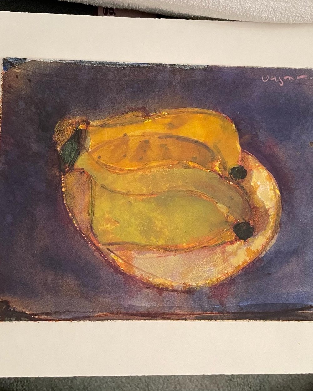 Who doesn’t love a bunch of bananas? Uncle Hank ate a banana just about every day, and today is no different. This beautiful still life in Watercolor is indicative of Virgona’s every day, everything.