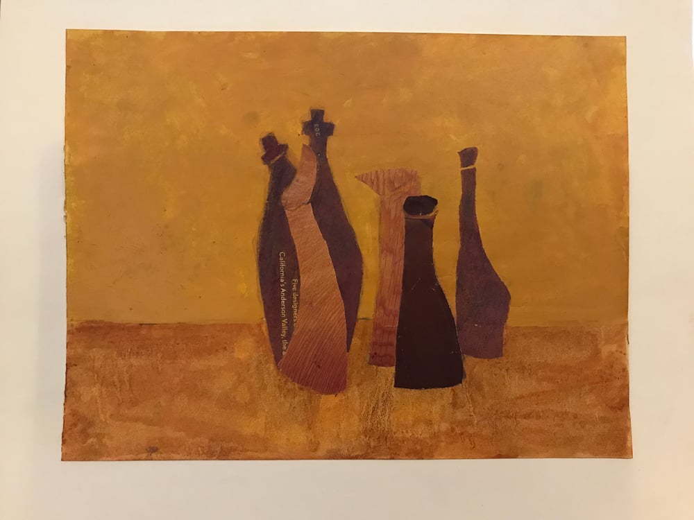 “Five (No Six) Designers” (Collage) 9x12” print mounted on 14x16” paper. The tribe can reconvened and while there are six, the message is clear — one needs to go (read the fine print.) This collage represents the range and diversity of Virgona’s work.