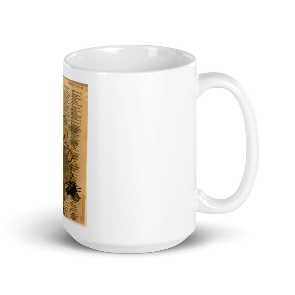 Whether you're drinking your morning coffee, evening tea, or something in between – this Hank Virgona mug is for you! It's sturdy and glossy with a vivid print, "On the Way to the Courthouse" that'll withstand the microwave and dishwasher.