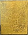 “The Box and the Inkwell Unite” (1994). — 10 1/2 x 8 1/2” (approx). This beautiful, vibrant yellow, orange, and brown incised wood and gouache painted still-life shows two friends getting together. This inkwell sat on Virgona’s Art desk everyday. This is framed and signed on the back. Featured & displayed at both the Mourlot (2007) and Salmagundi (2018) galleries.