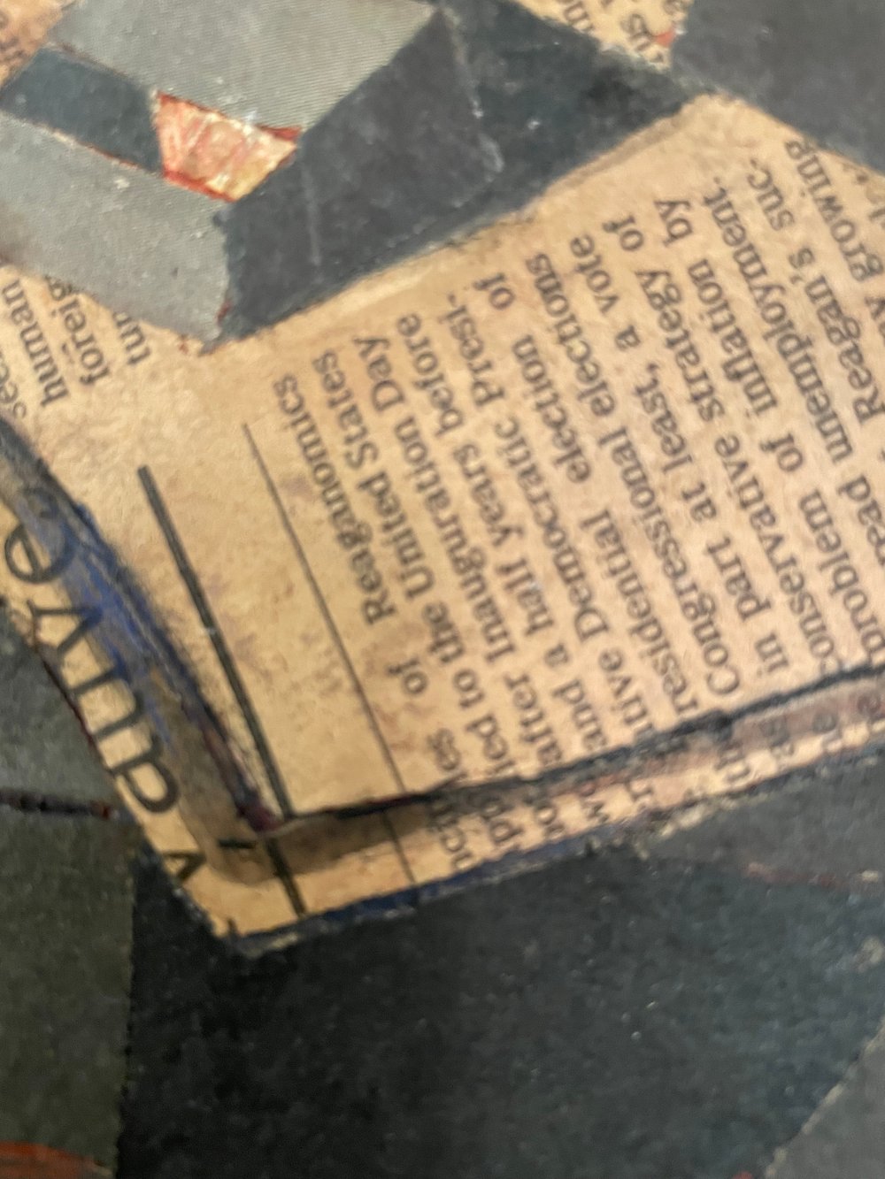 Virgona always manage to incorporate the current events in his artwork. Well Reaganomics wasn’t popular in 2002, he seem to find historical references for his newspaper clipping medium. This collage has a lot of depth and when you look closely you can see how meticulously he worked to create this beautiful piece.